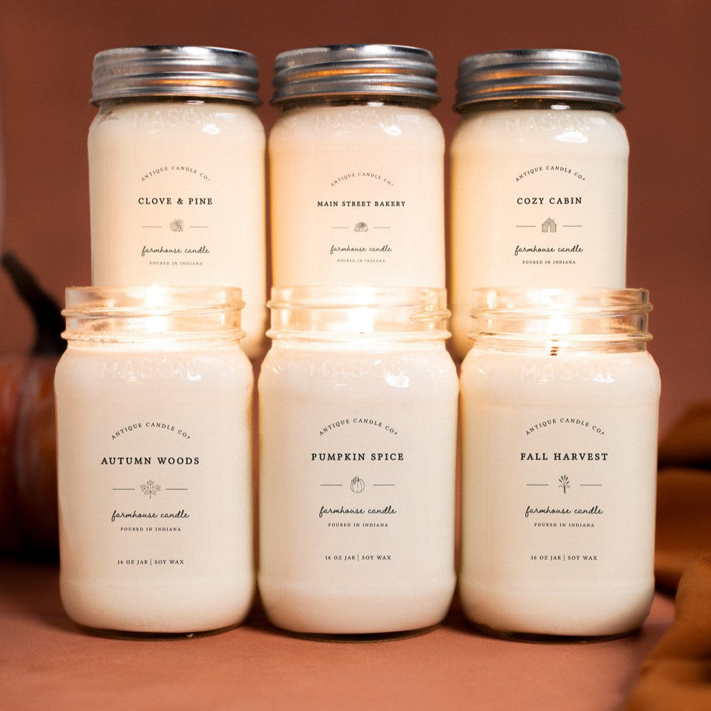 Our candles are made in Lafayette, Indiana with natural soy wax from domestically grown soy beans for a clean, long-lasting, and even burn. We use premium fragrance oils (hand-picked by thousands of candle testers across the U.S.!) and 100% lead-free cotton wicks. All candles are paraffin free, dye free, and cruelty free.